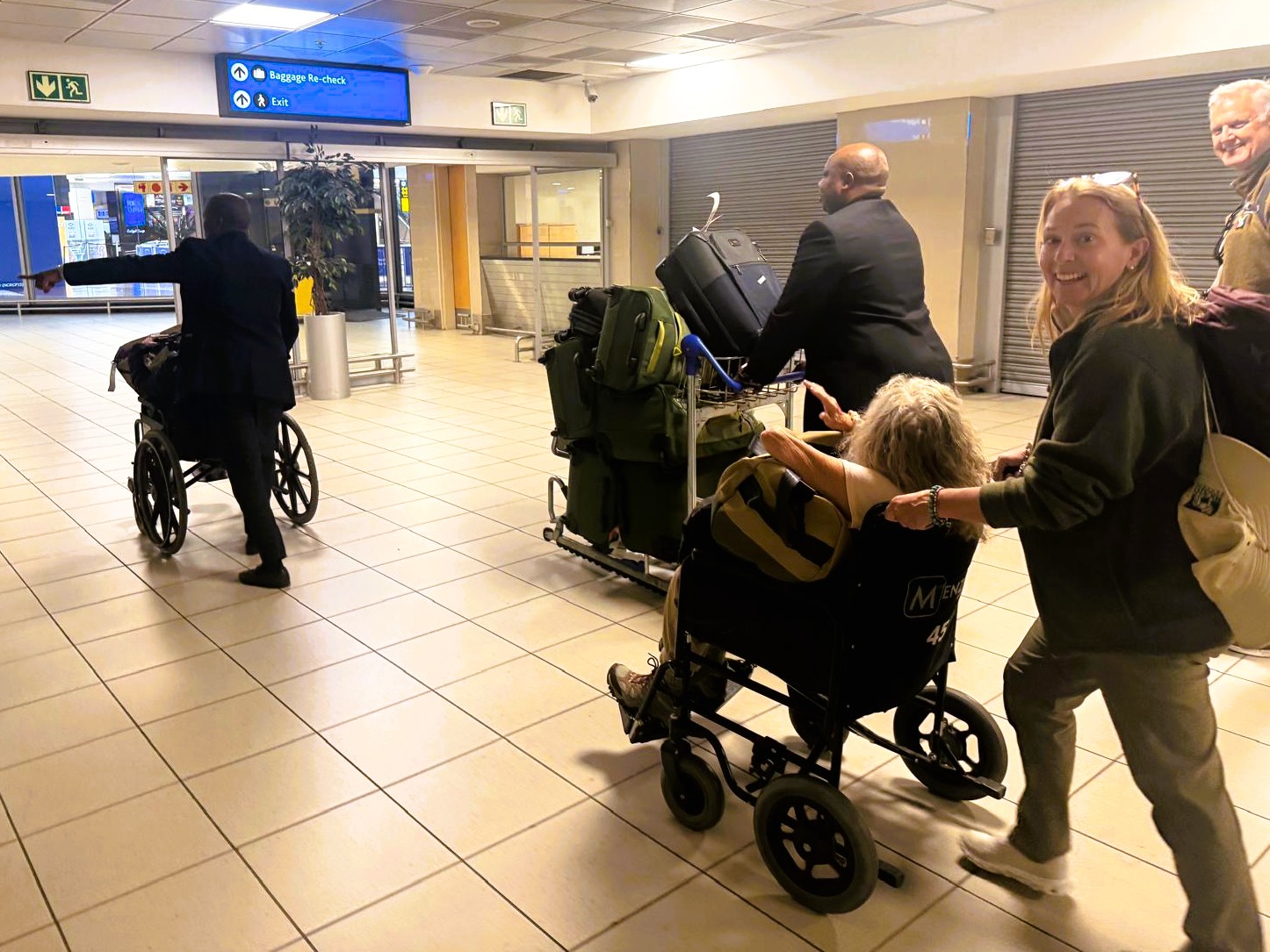 wheelchairs to help expedite us through the airport.